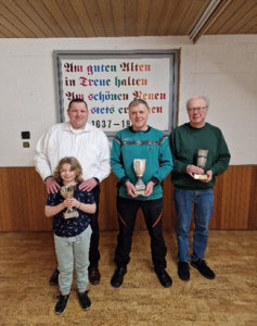 Zum Freundschaftsschießen am 21.02.2026 nahmen 21 Personen teil, davon traten 13 Schützen an. Drei Wanderpokale standen bereit. Die besten Pistolen- und Gewehrschützen und die beste Mannschaft wollten ermittelt werden. Die Mannschaften mit je 6 Schützen und ein Einzelschütze haben jeweils 20 Schuss mit dem Luftgewehr und der Luftpistole geschossen.